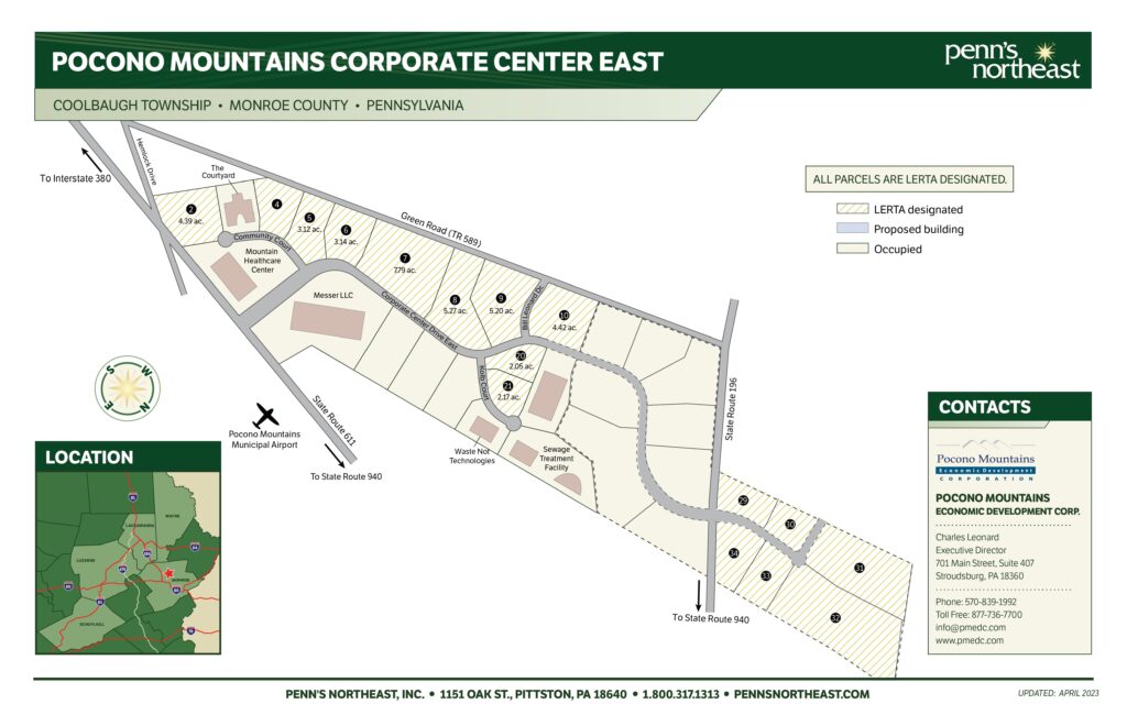 Lots 6 and 7 at the Pocono Mountains Corporate Center East can be clustered together to create a larger lot totaling 10.95 acres. Approved for LERTA benefits!