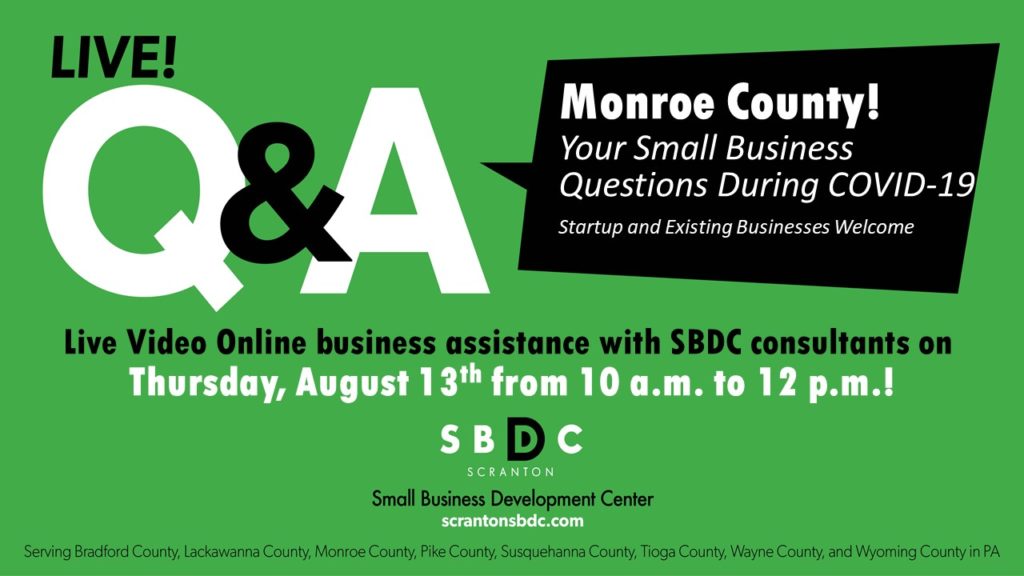Join the Small Business Development Center for a LIVE Q&A on Thursday, 8/13/2020 from 10 a.m. to noon to talk about your small business questions during COVID-19. Startup and existing business owners are welcome to join.